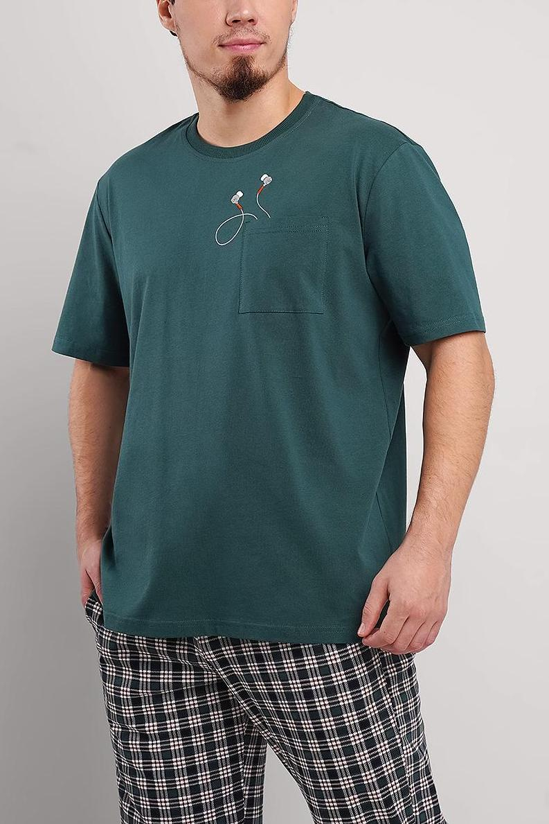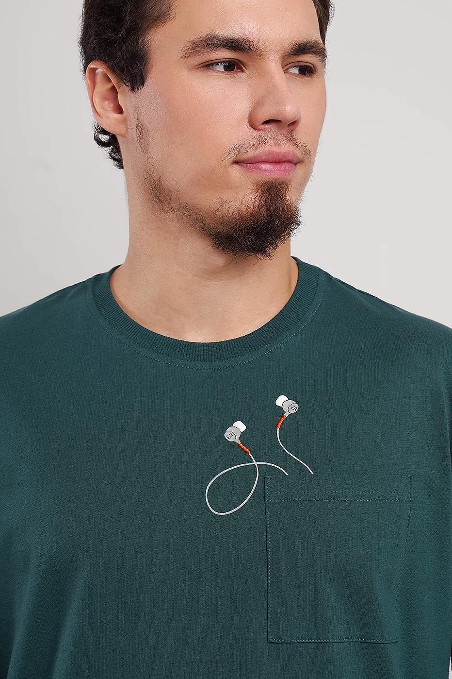 Футболка из кулирной глади с накладным карманом и дизайнерским принтом с элементами вышивки.