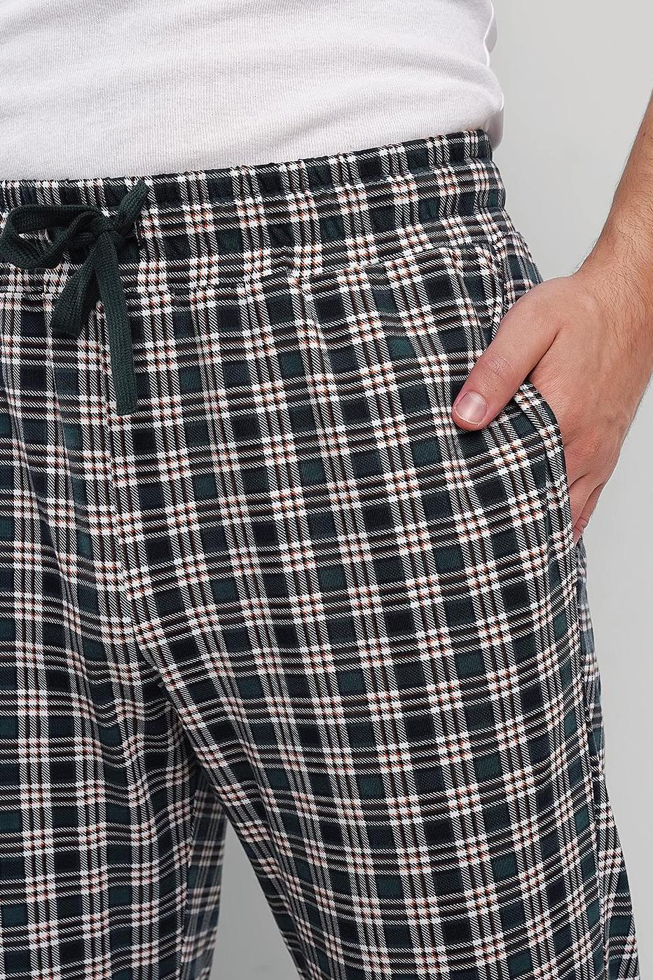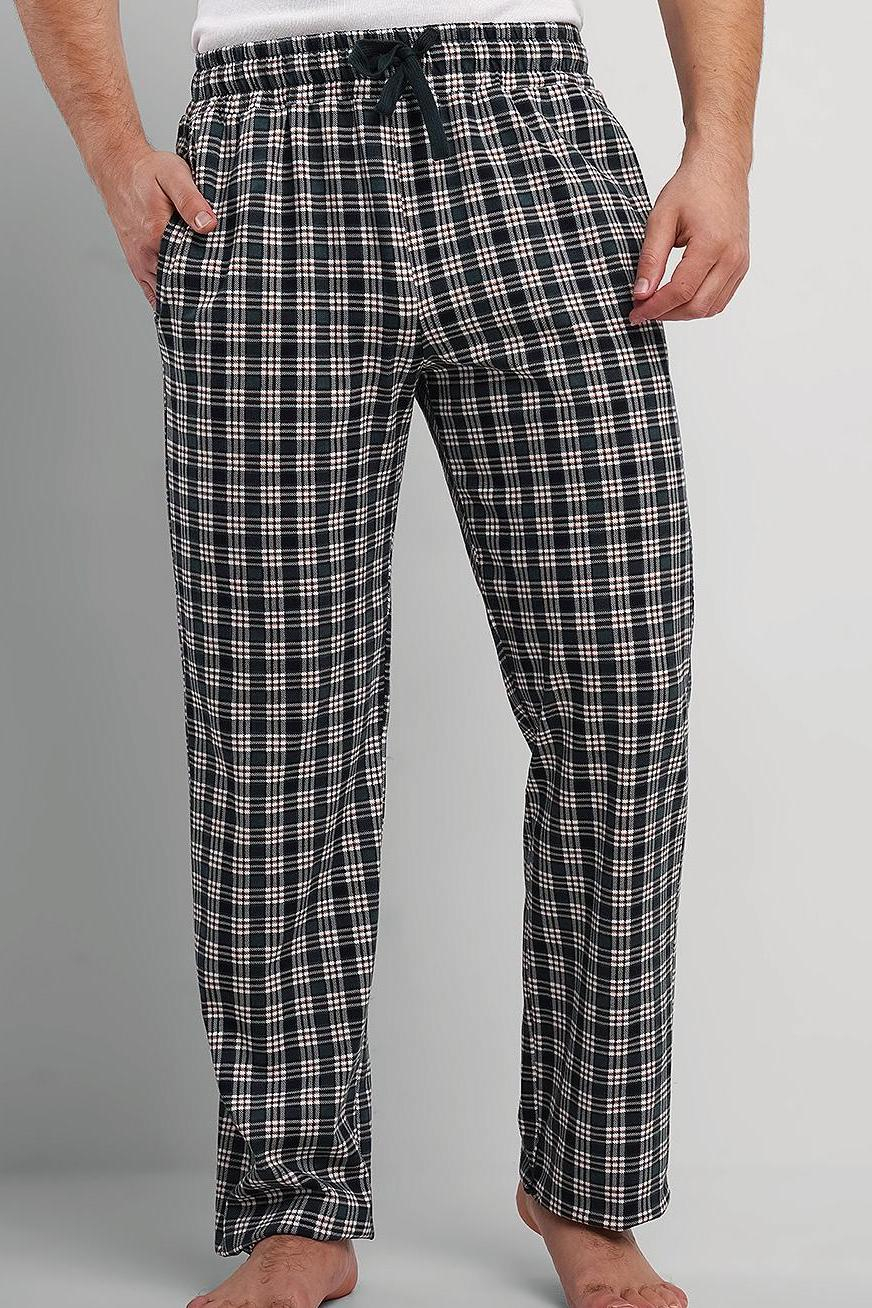 Брюки из плотной кулирной глади в клетку на эластичном поясе с функциональными карманами и шнуром.
