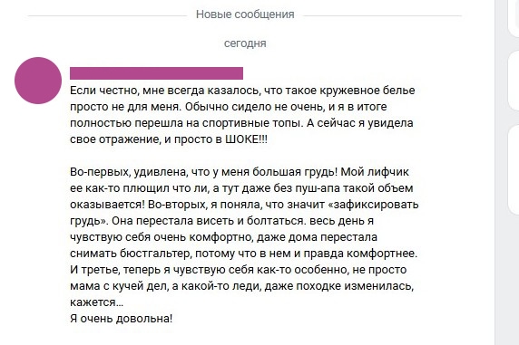 Нам всегда радостно получать такую обратную связь от вас! Именно для этого мы и работаем, чтобы каждая женщина могла подобрать удобное белье, подчеркнуть свою красоту и почувствовать уверенность!