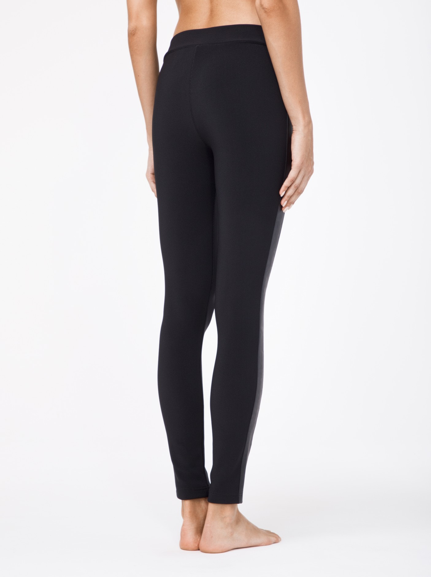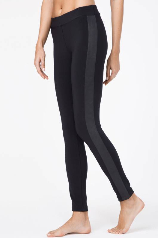 Моделирующие леггинсы с лампасами. Классические леггинсы для женщин выполнены из прочного эластичного полотна в "рубчик". Облегающий крой, эластичный , широкий пояс по талии обеспечивает максимальную свободу движения, а лампас из кожи по боку вдоль ножки подчеркивает и в тоже время удлиняет линию ног. Комбинируются с любыми изделиями, позволяя фантазировать и создавать яркие модные образы, поэтому являются незаменимым предметом в гардеробе каждой женщины!