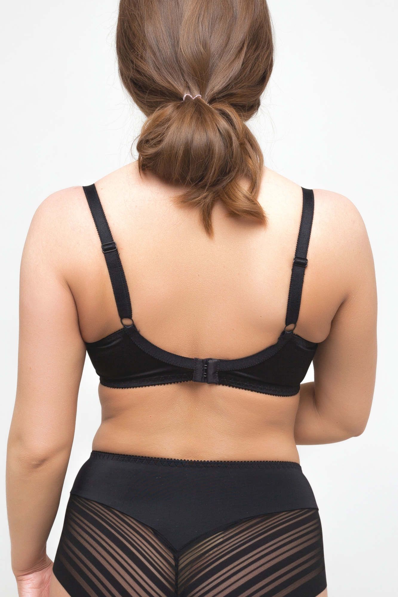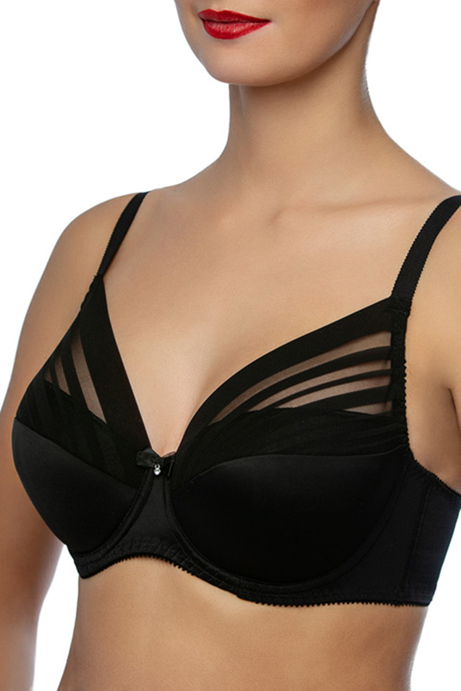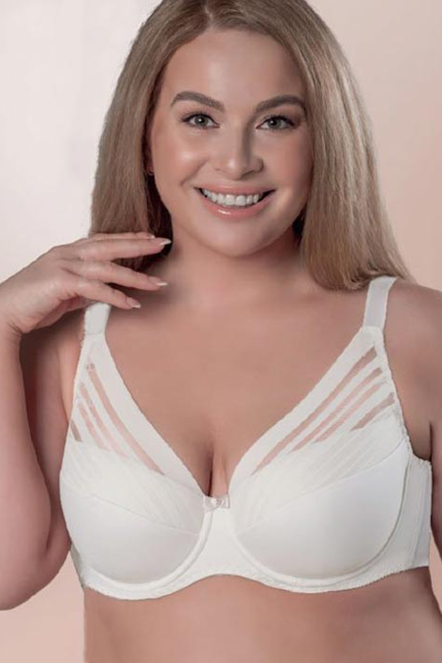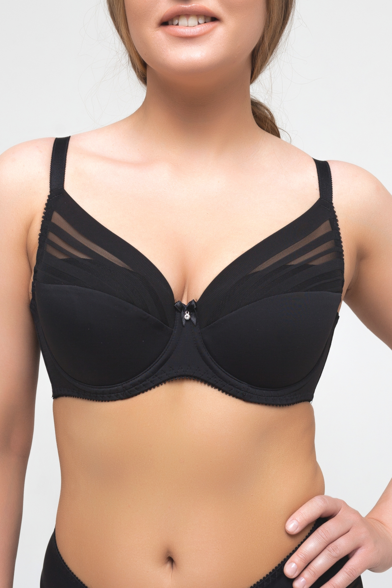 Универсальный бюстгальтер выполнен из эластичного кружева с арнаментом "полоска", эластичной микрофибры и полотна soft.