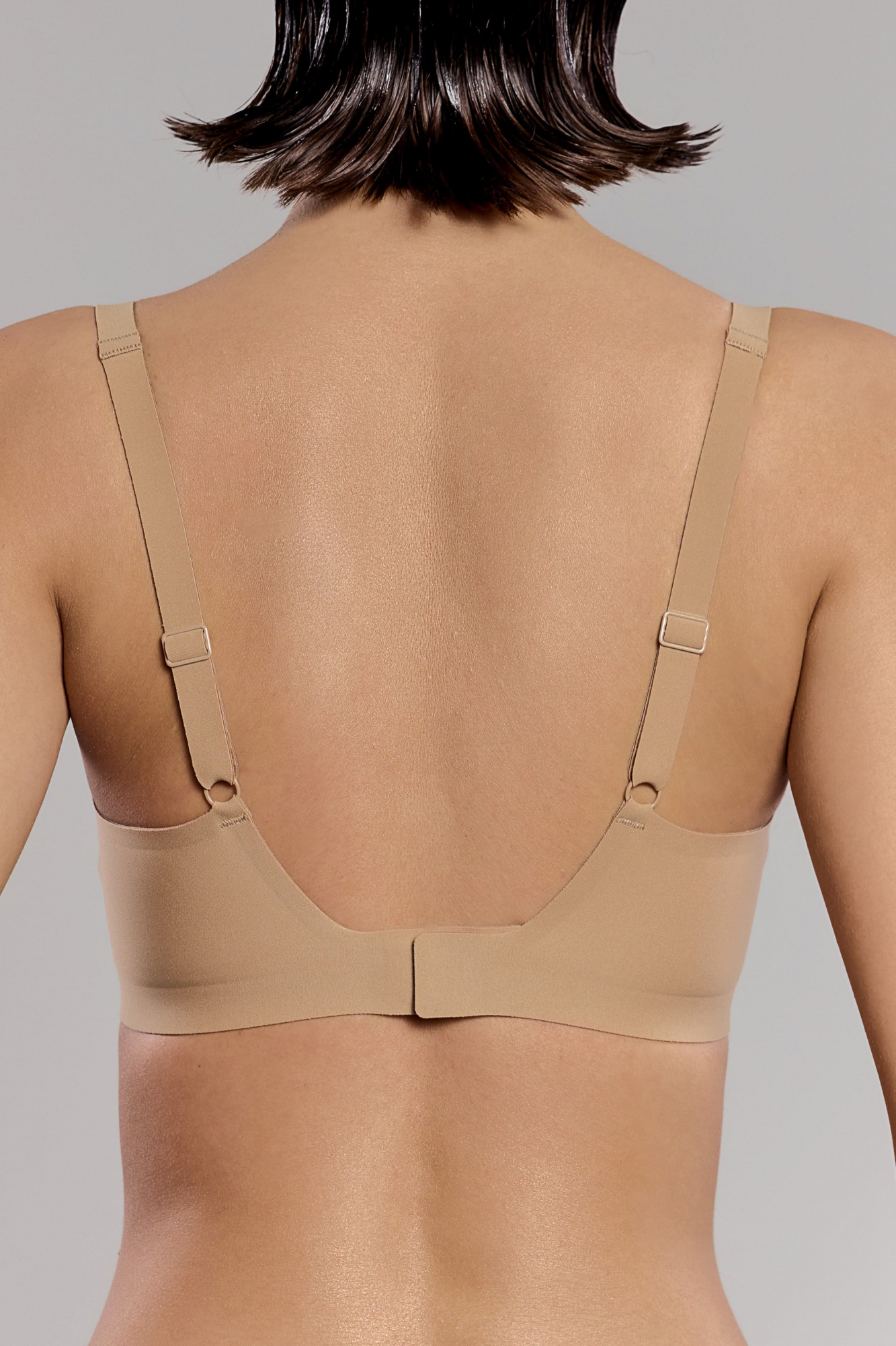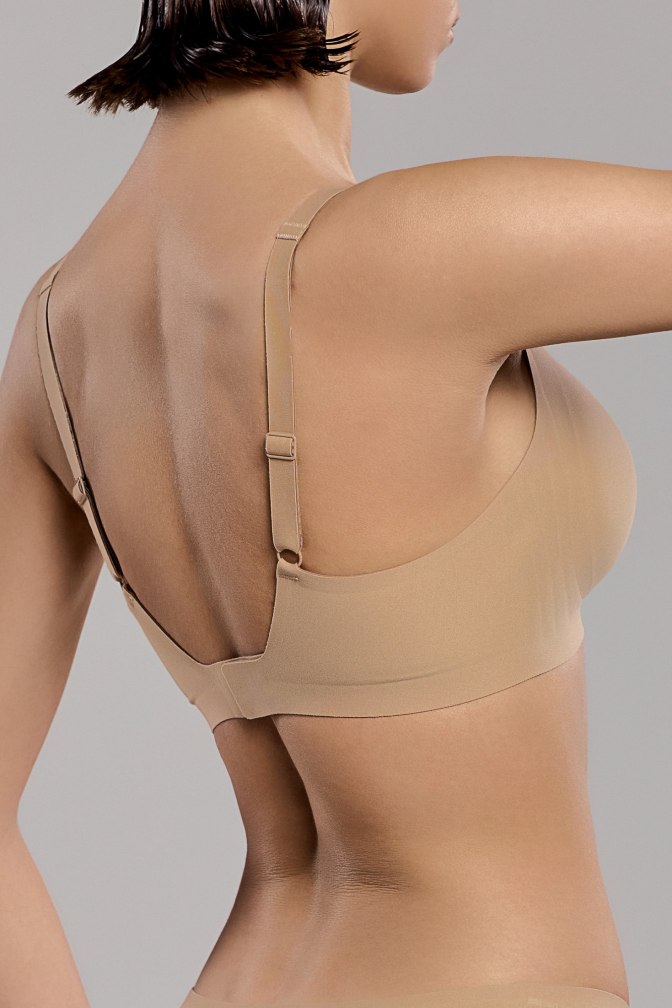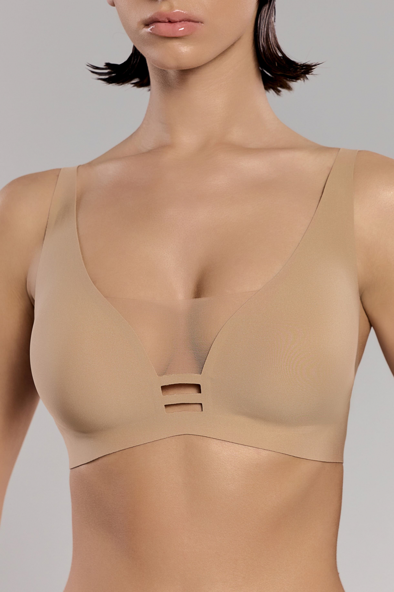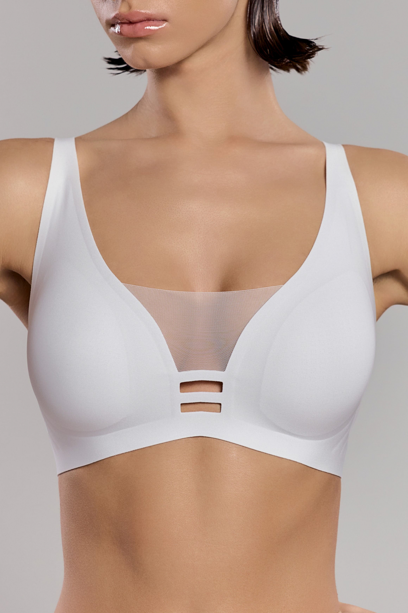 Бюстгальтер с глубоким вырезом декольте, усиленным эластичной сеткой.