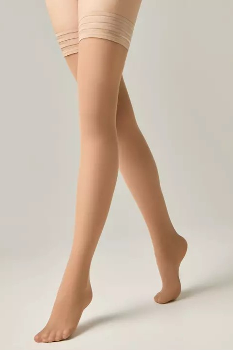 Благодаря оригинальной резинке-конве в контрастную полоску чулки лучше фиксируются и не спадают.