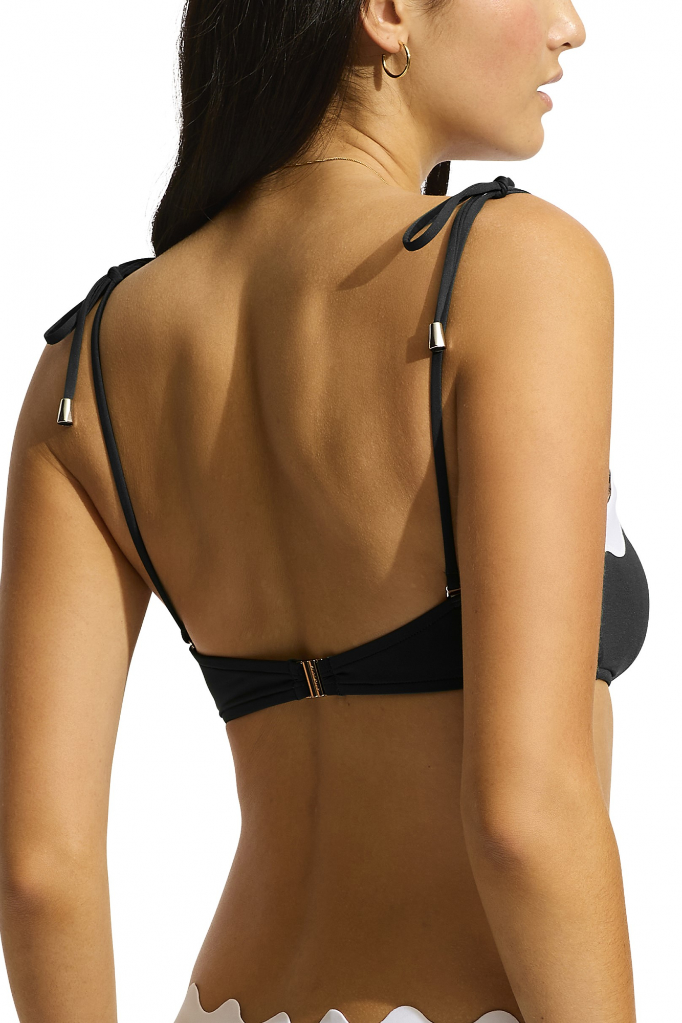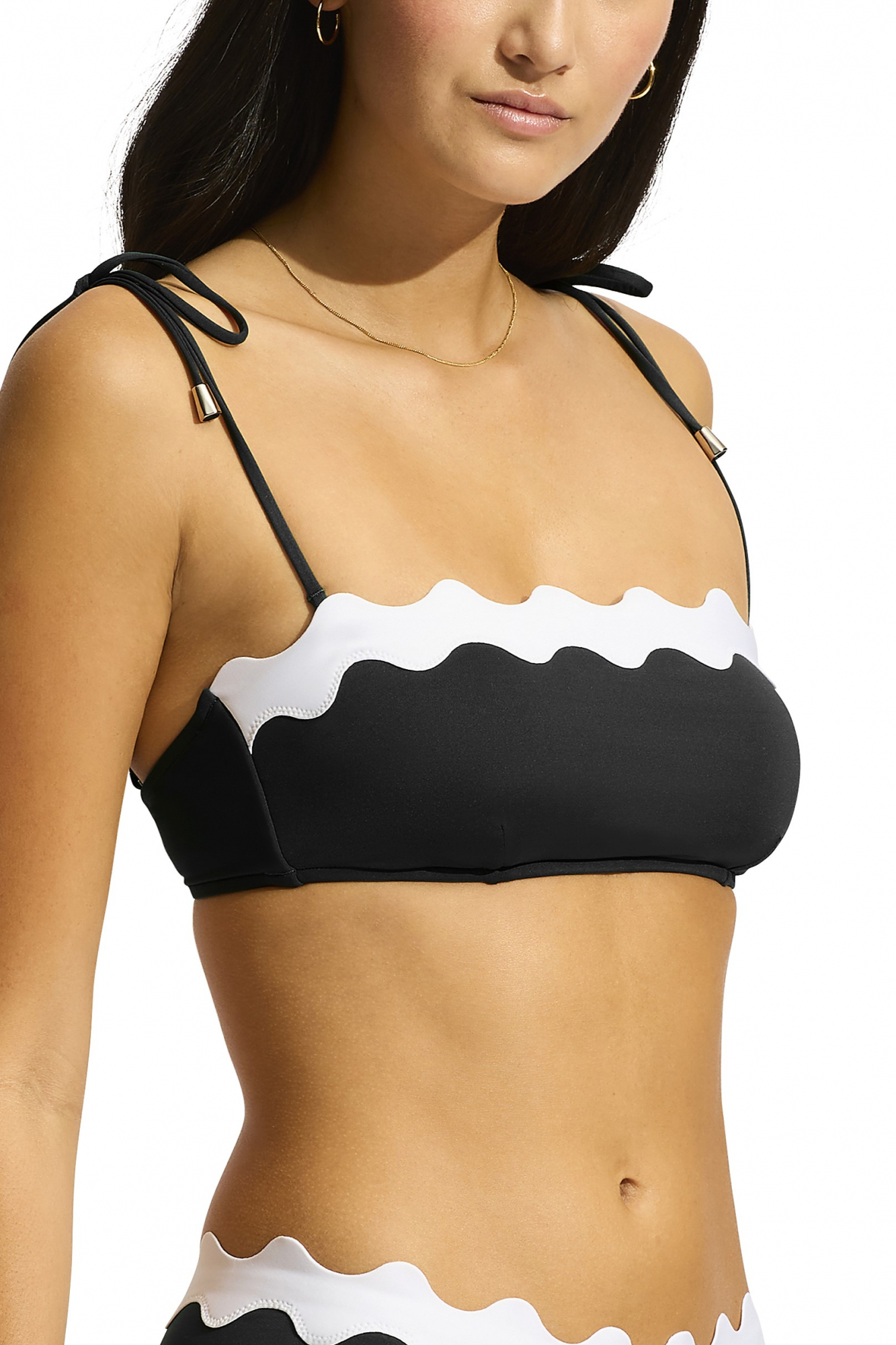 Элегантный однотонный купальный бюст-бандо с контрастной волнистой полосой по верху бюста.