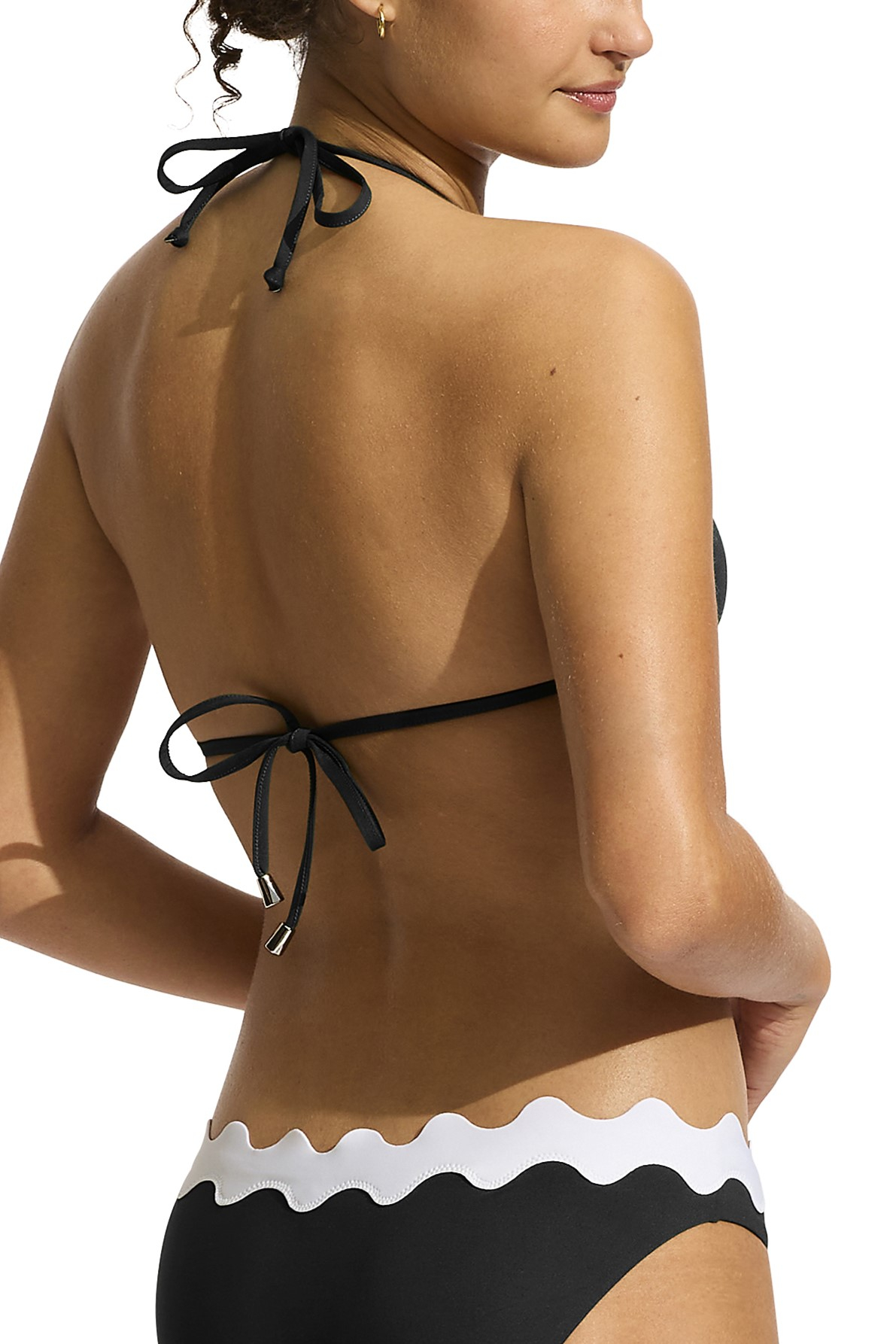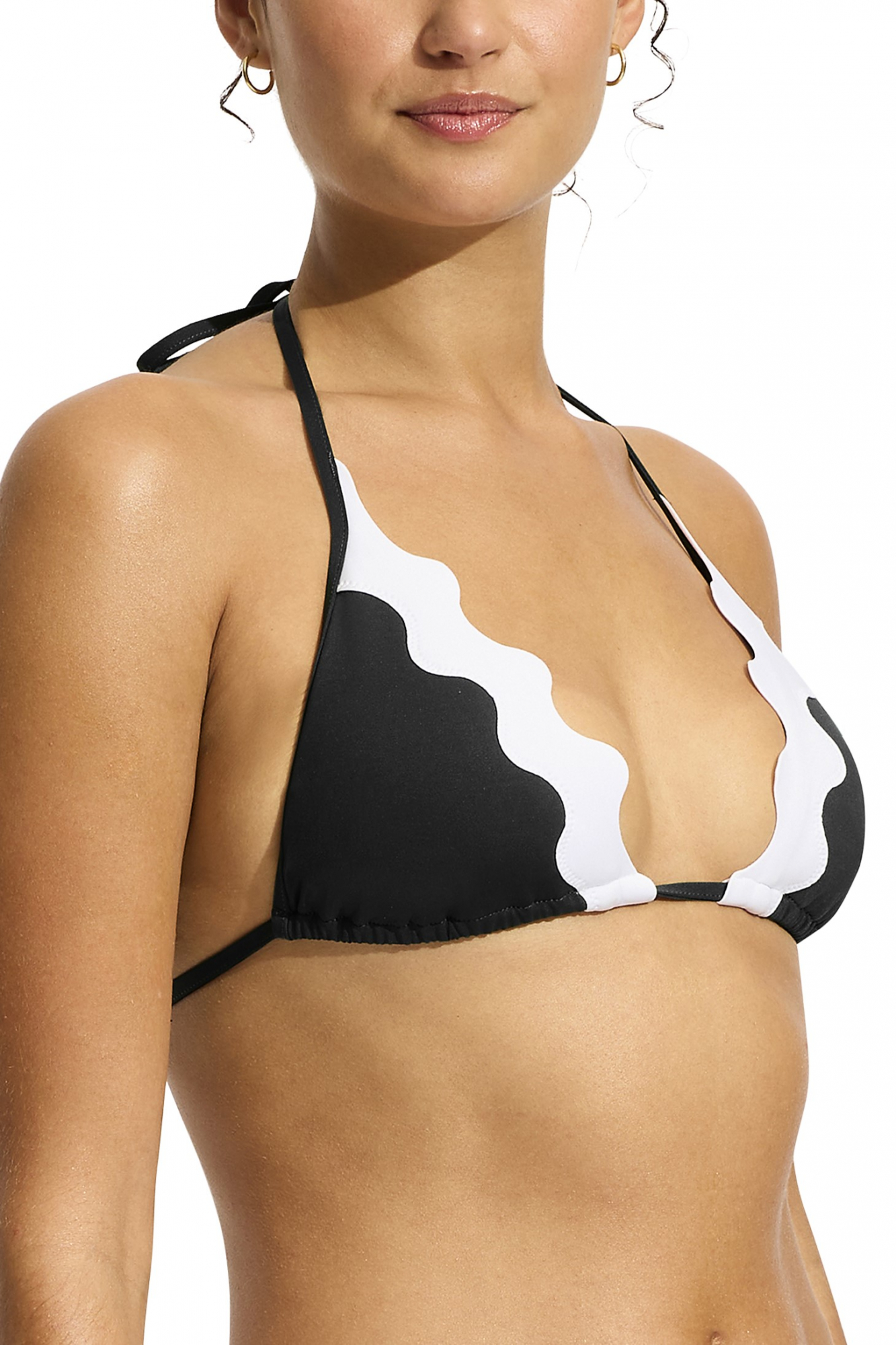 Элегантный однотонный купальный бюст с контрастной волнистой полосой по верху бюста.