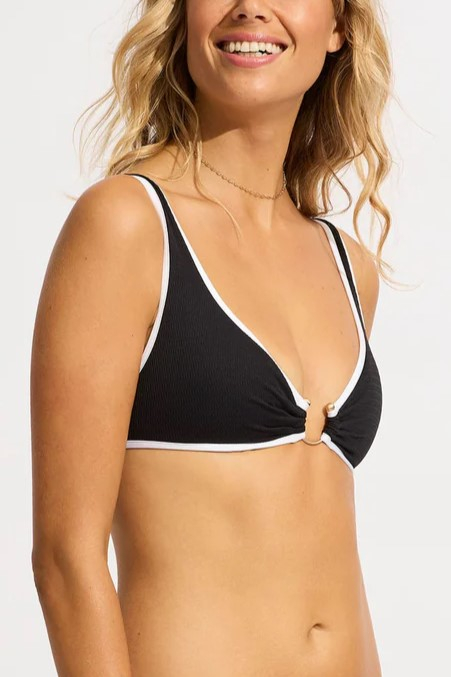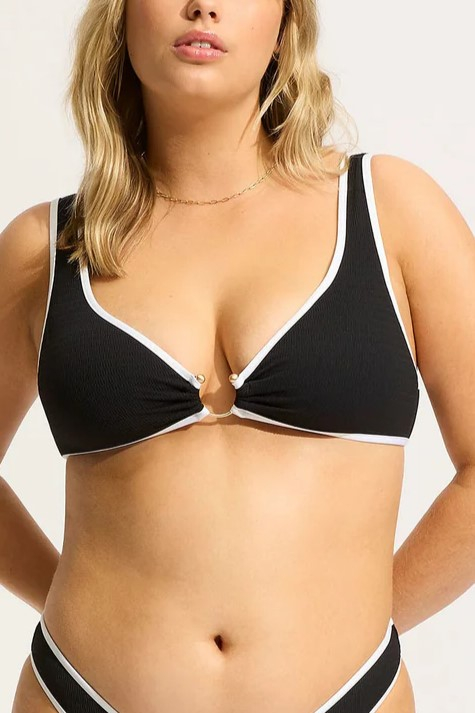 Дерзкий купальный бюст с контрастными краями в стиле спорт-шик.