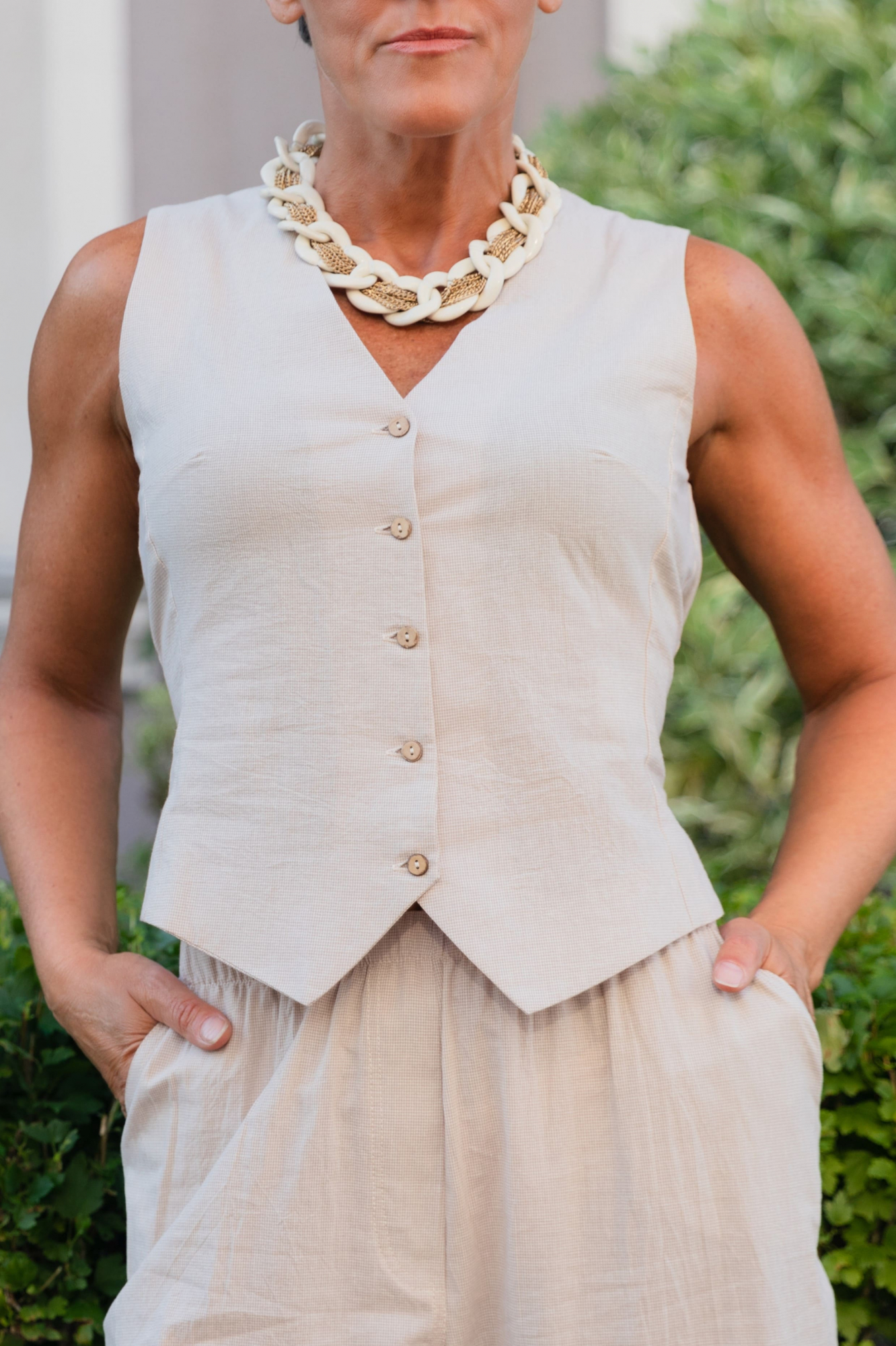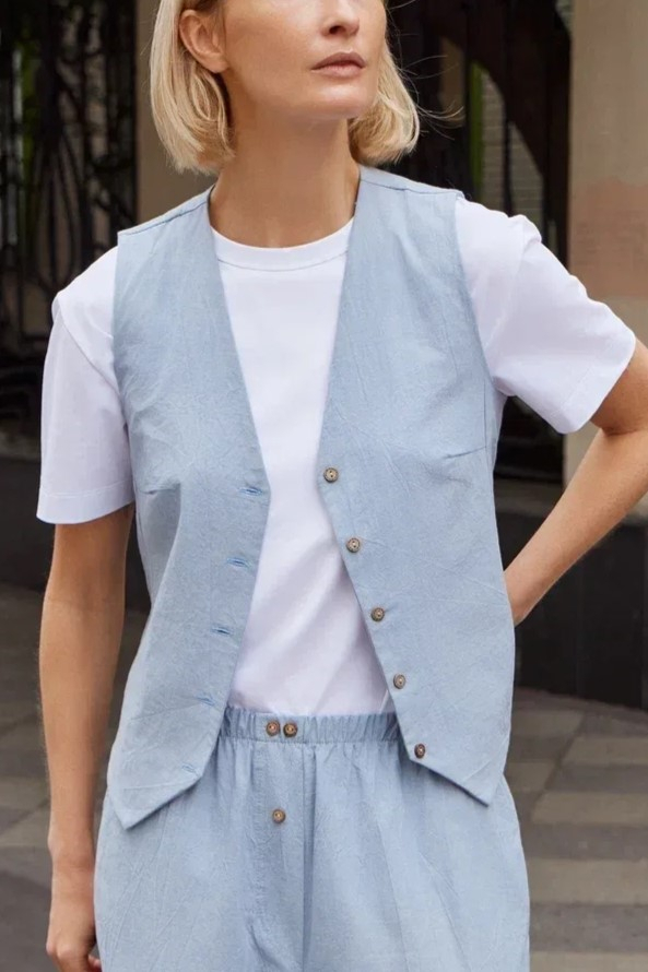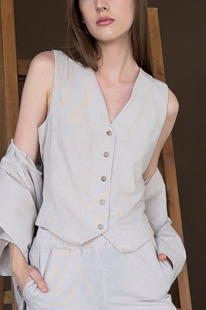 Жилет впишется как в строгий, так и в более расслабленный образ.