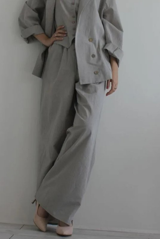 Модель выполнена из вареного хлопка, который придает ткани легкий эффект помятости и подчеркивает натуральную структуру ткани.