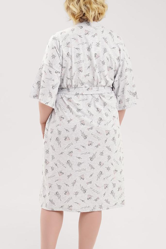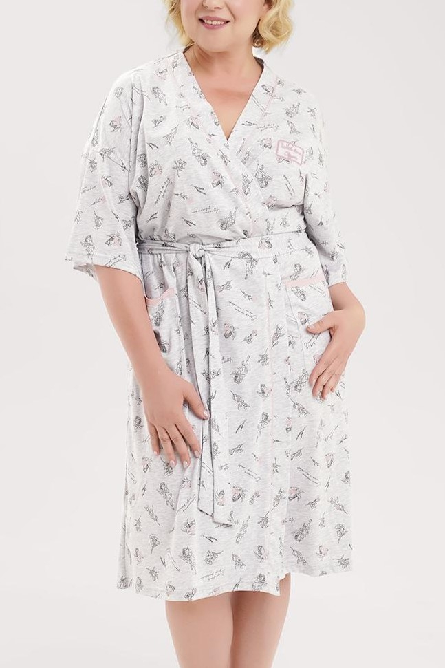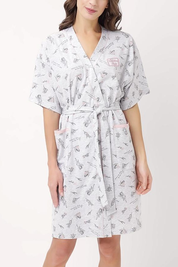 Удобный короткий халат на запах в оригинальном принте.