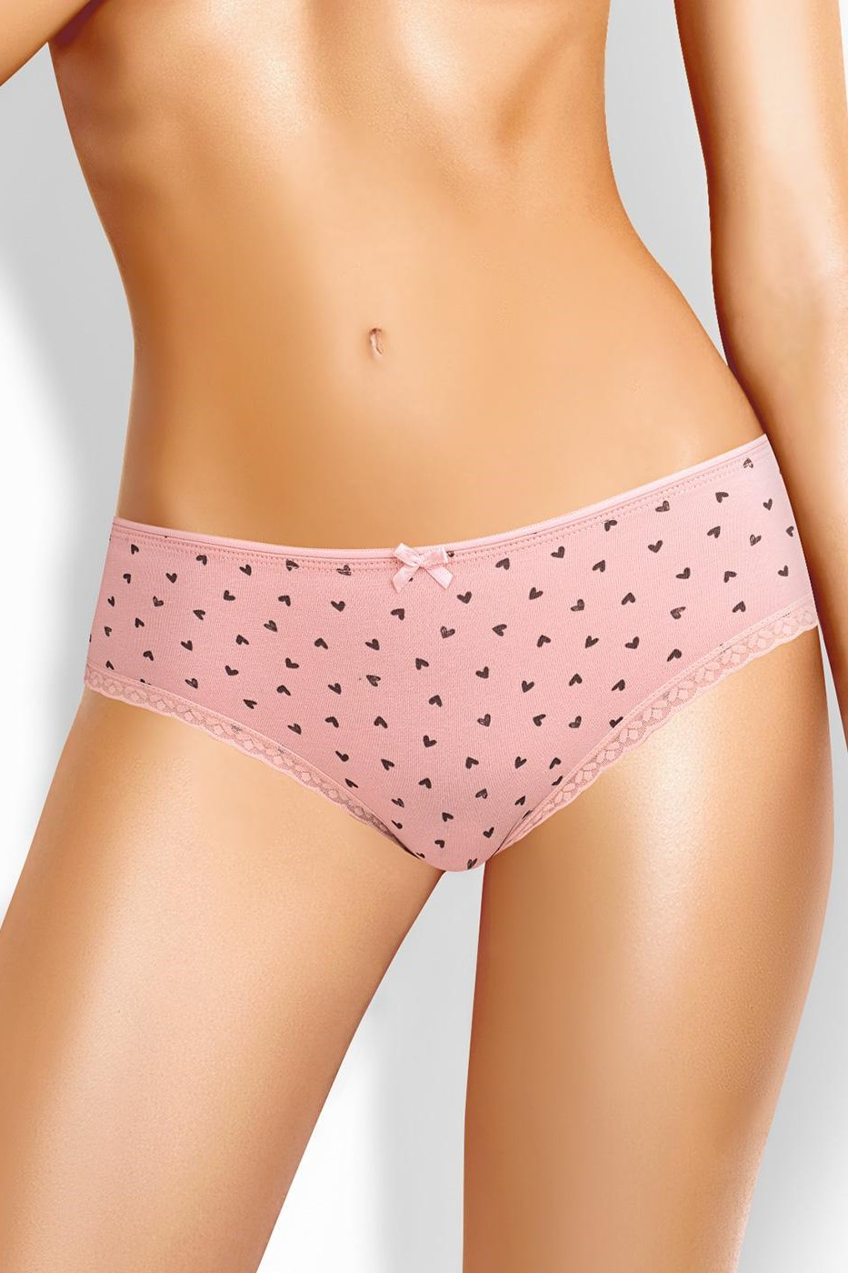 Модель выполнена из приятного к телу эластичного хлопкового полотна дополнена принтом в сердечко.