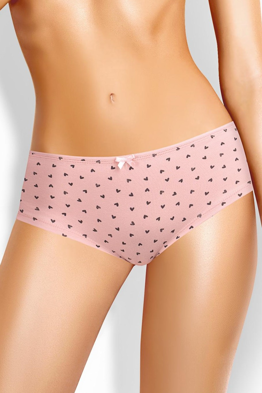 Модель выполнена из приятного к телу эластичного хлопкового полотна дополнена принтом в сердечко.