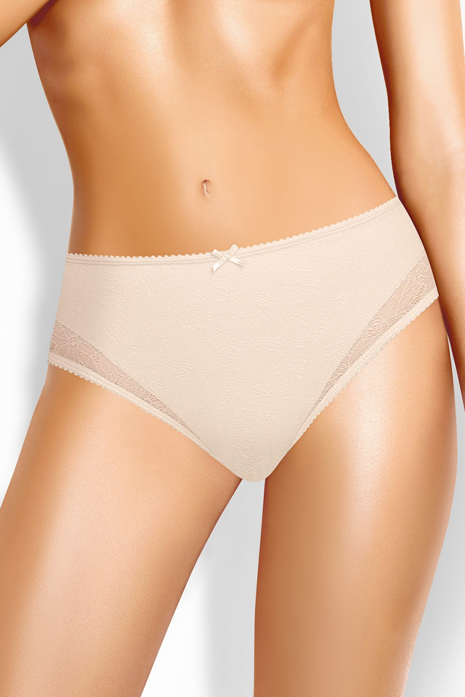 По переду кружевное полотно, дублируется вставкой из хлопкового полотна, швы застилом, атласный бант.