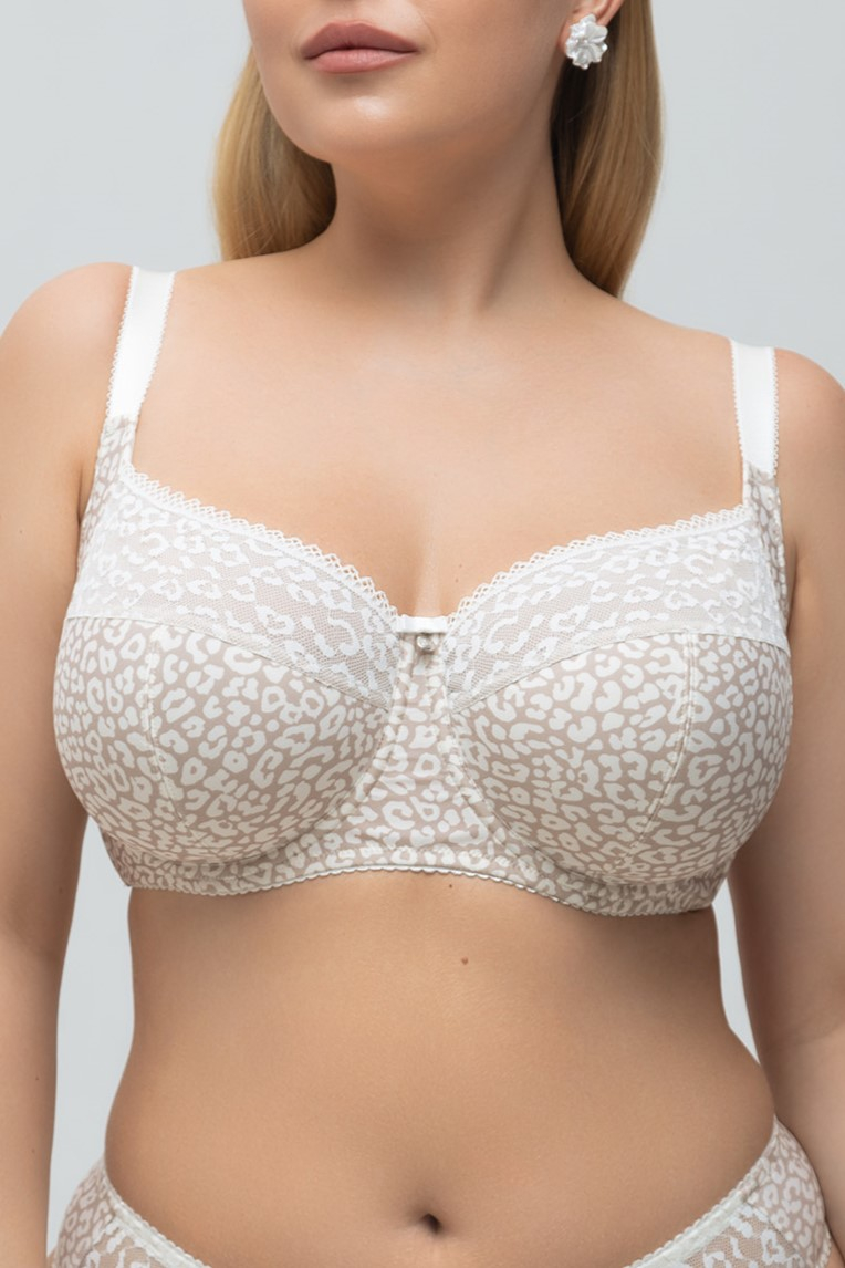 Бюст с закрытой мягкой чашкой и высокой перемычкой комфортно вмещает и надежно фиксирует грудь большого объема.