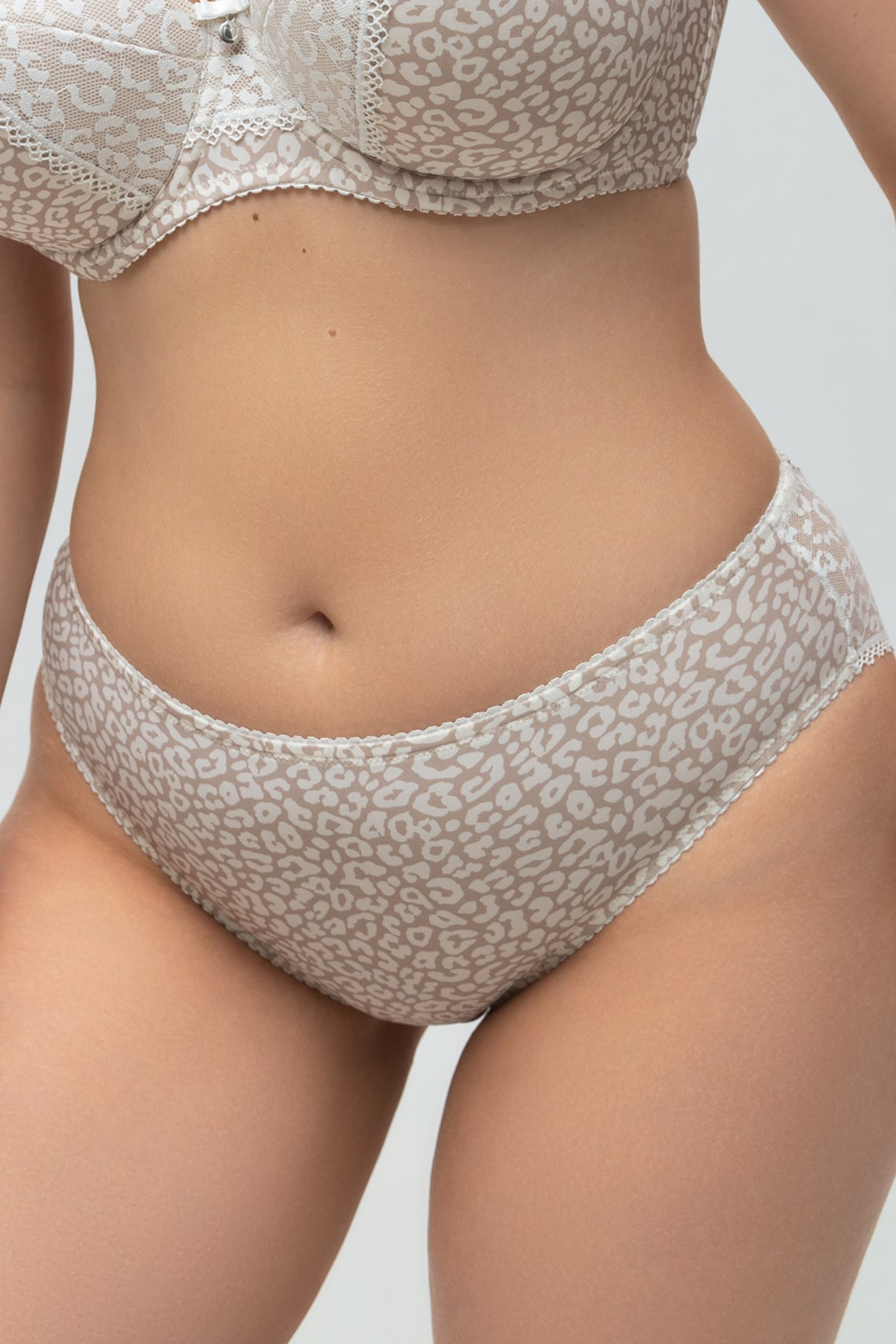 Модель выполнена из эластичного полотна, дополненного анималистичным принтом. На спинке кружевные вставки.