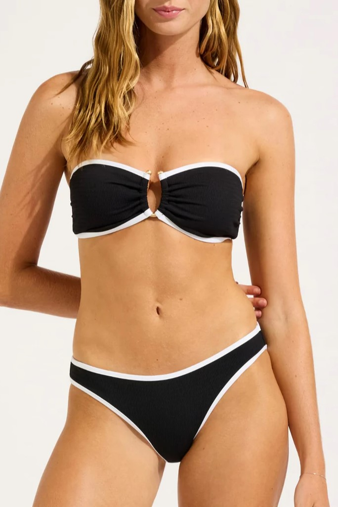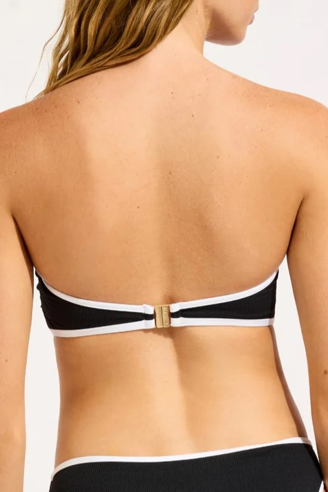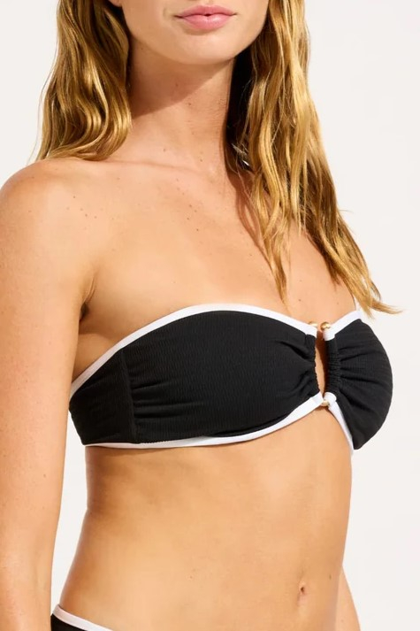 Эффектный купальный бюст-бандо с контрастными краями в стиле спорт-шик.
