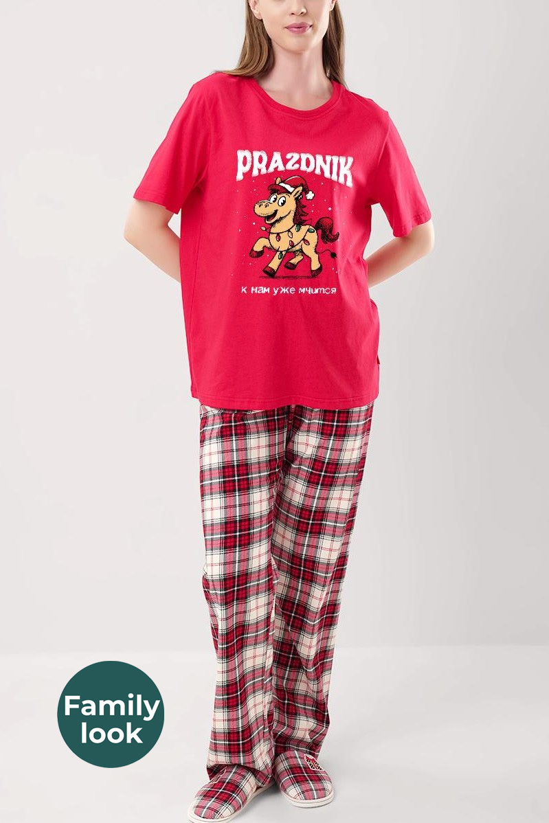 Хлопковая пижамка с ярким праздничным принтом.