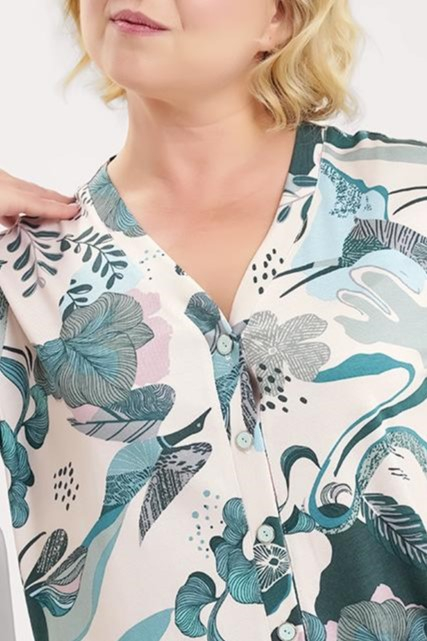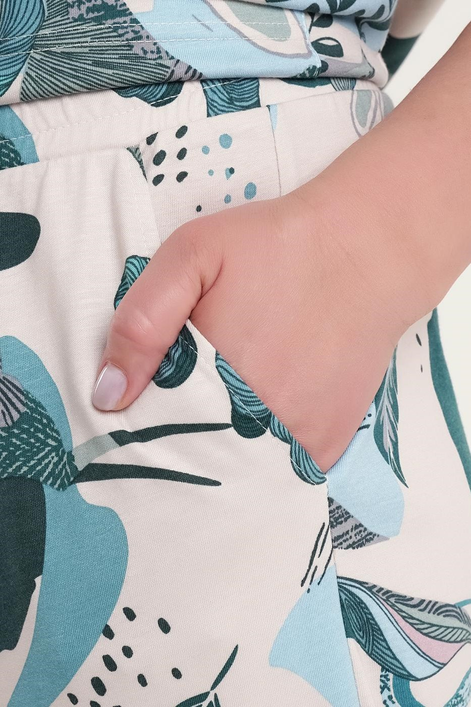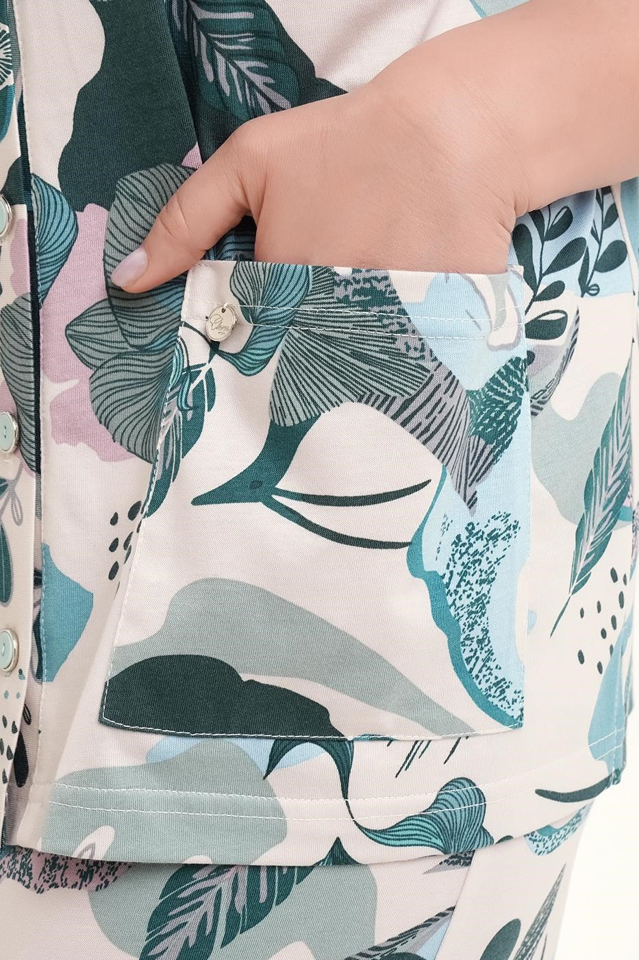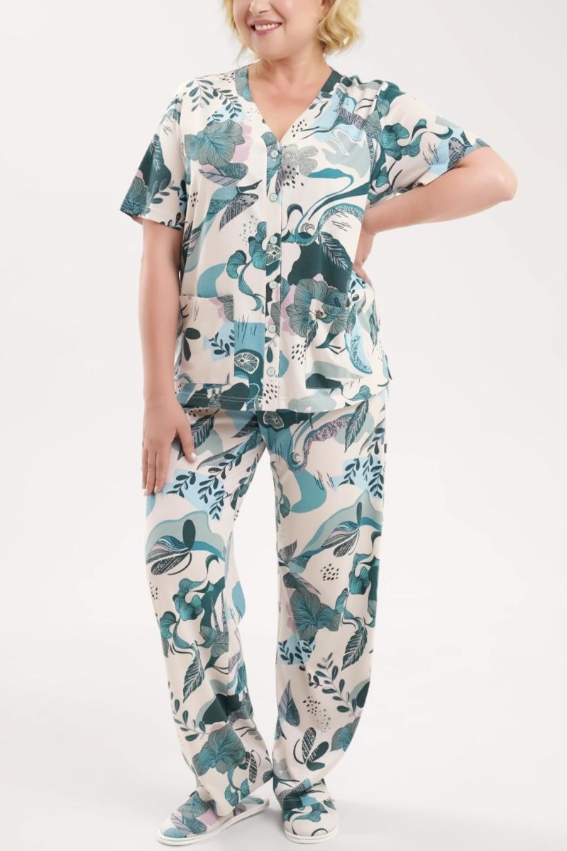 Очаровательная пижама, дополненная растительным принтом.