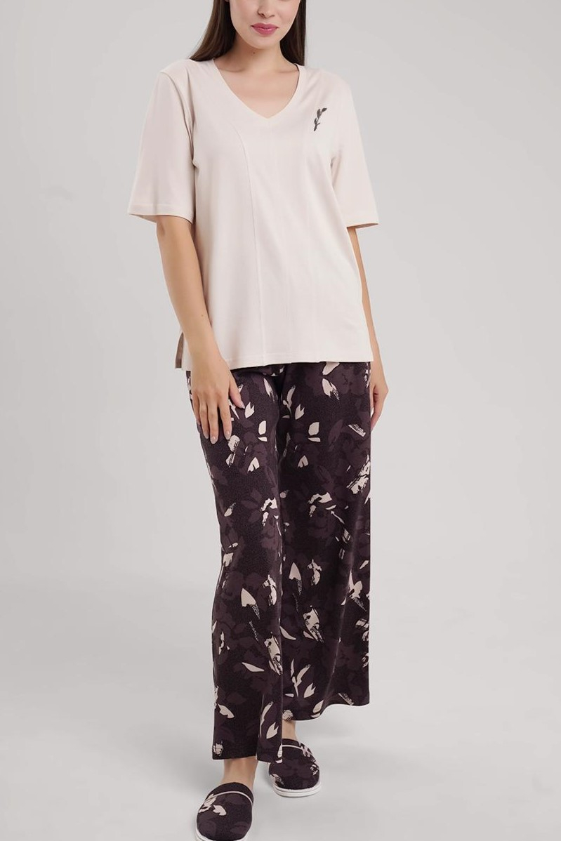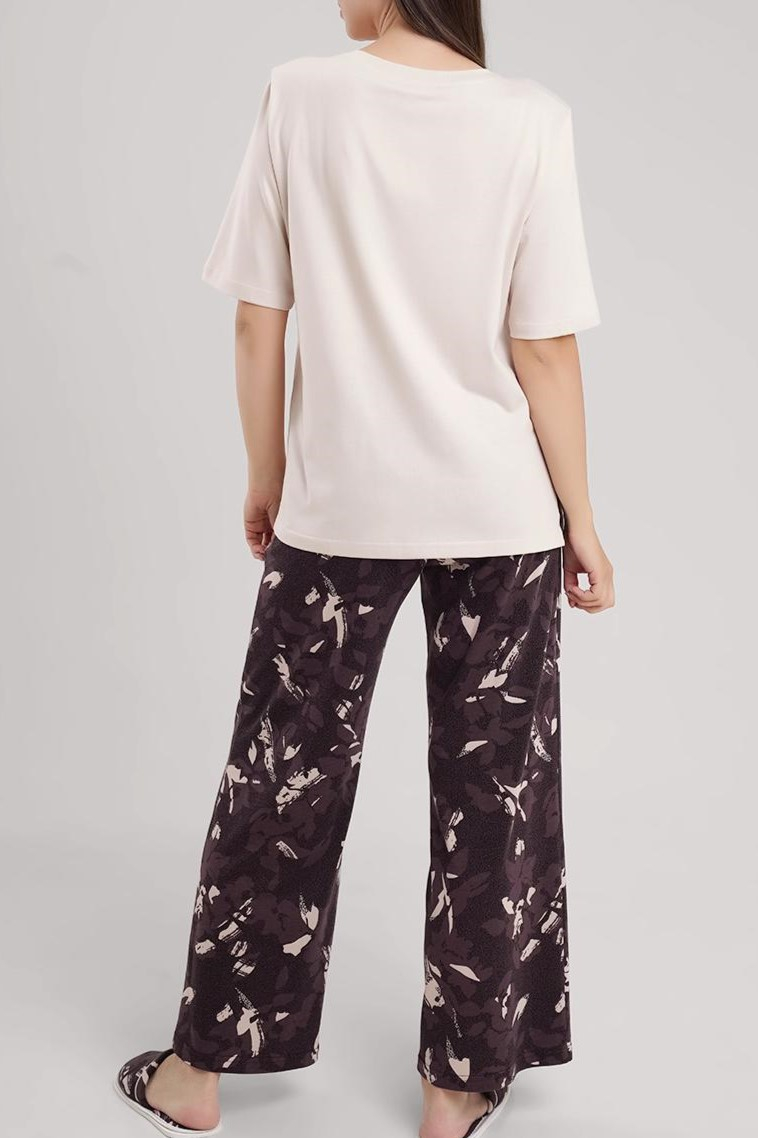 Элегантная пижама расслабленного силуэта, выполненная из трикотажного хлопкового полотна с добавлением модала. Такой материал приятен к телу и отлично пропускает воздух.