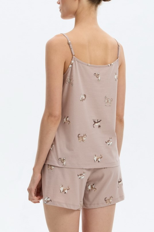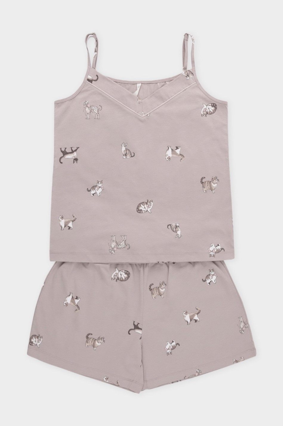 Пижамка дополнена милым принтом с котиками.
