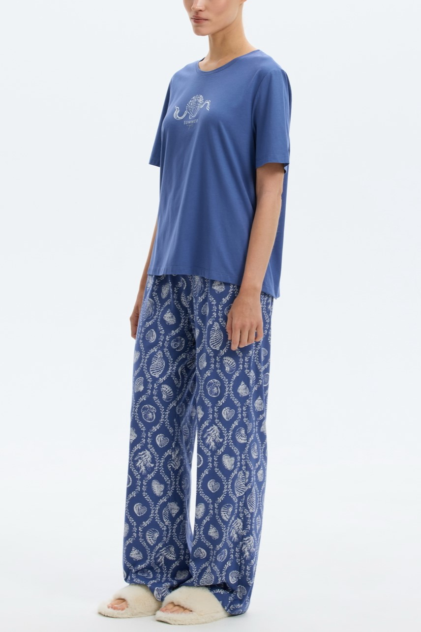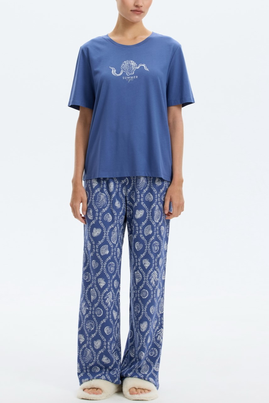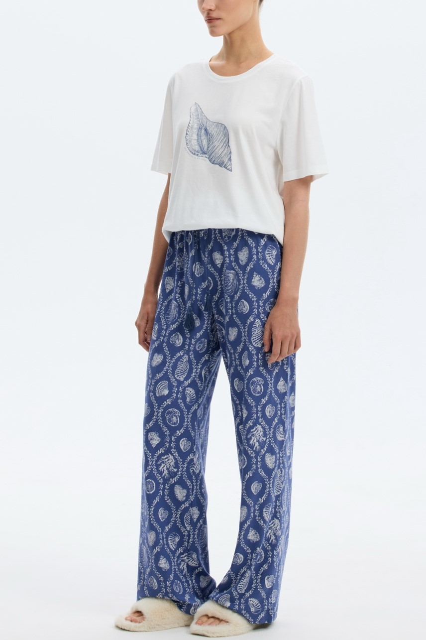 Комплект дополнен принтом в морской тематике, подойдет для сна и в качестве домашней одежды.