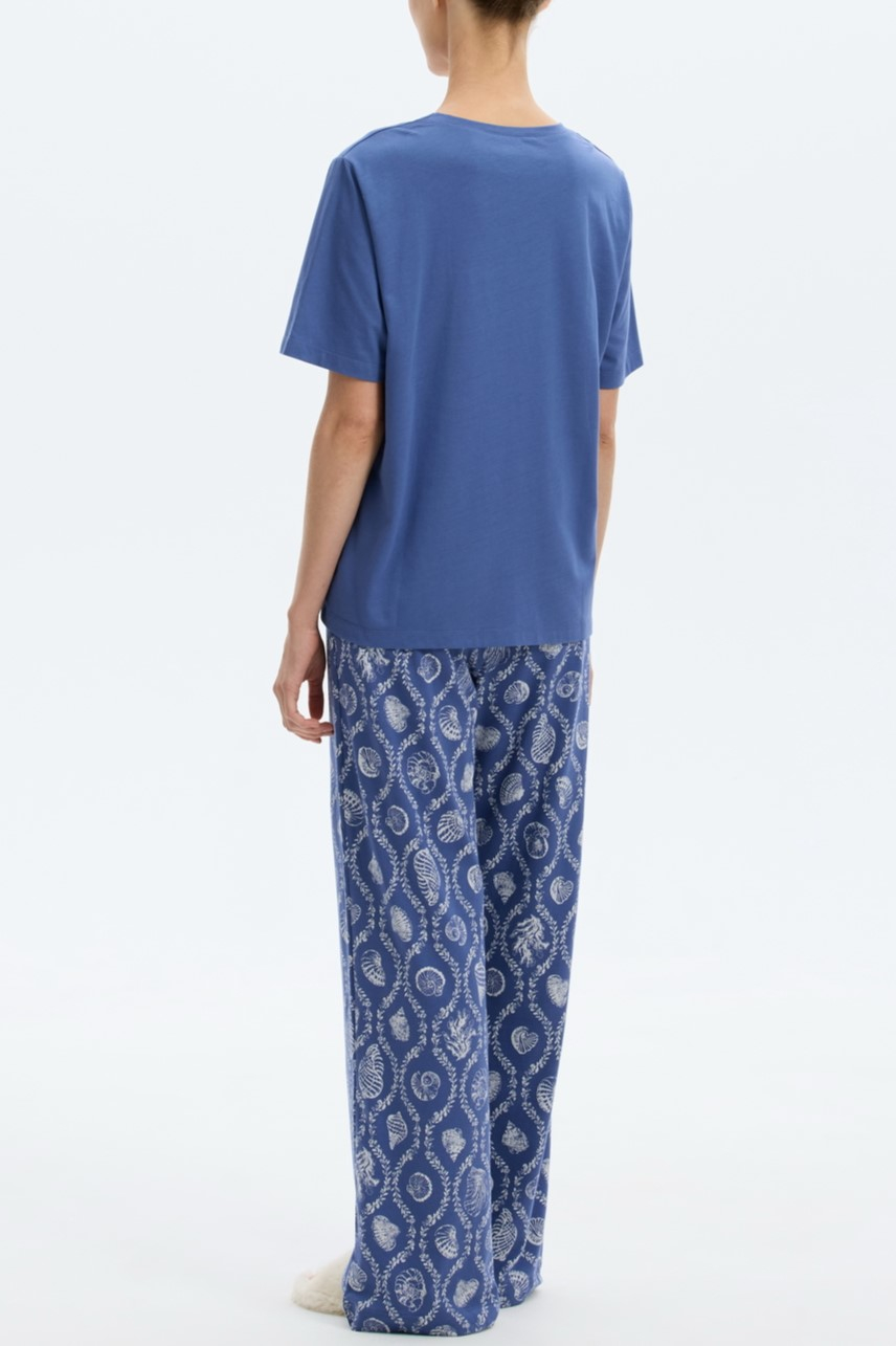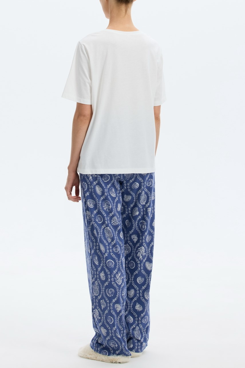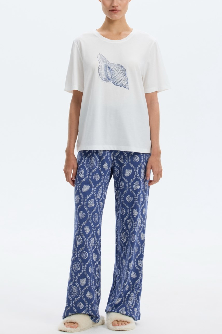 Комплект дополнен принтом в морской тематике, подойдет для сна и в качестве домашней одежды.