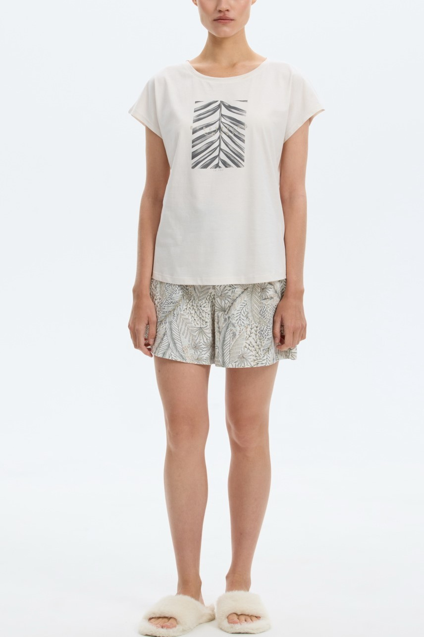 Свободные короткие шортики с мягким поясом, дополненные растительным принтом, обеспечивают свободу движений и комфорт.