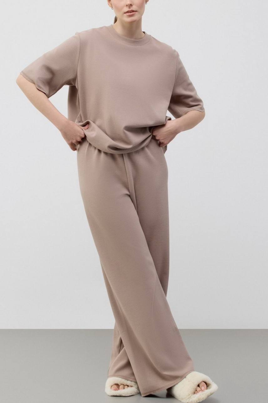 Брюки свободного кроя без боковых швов.