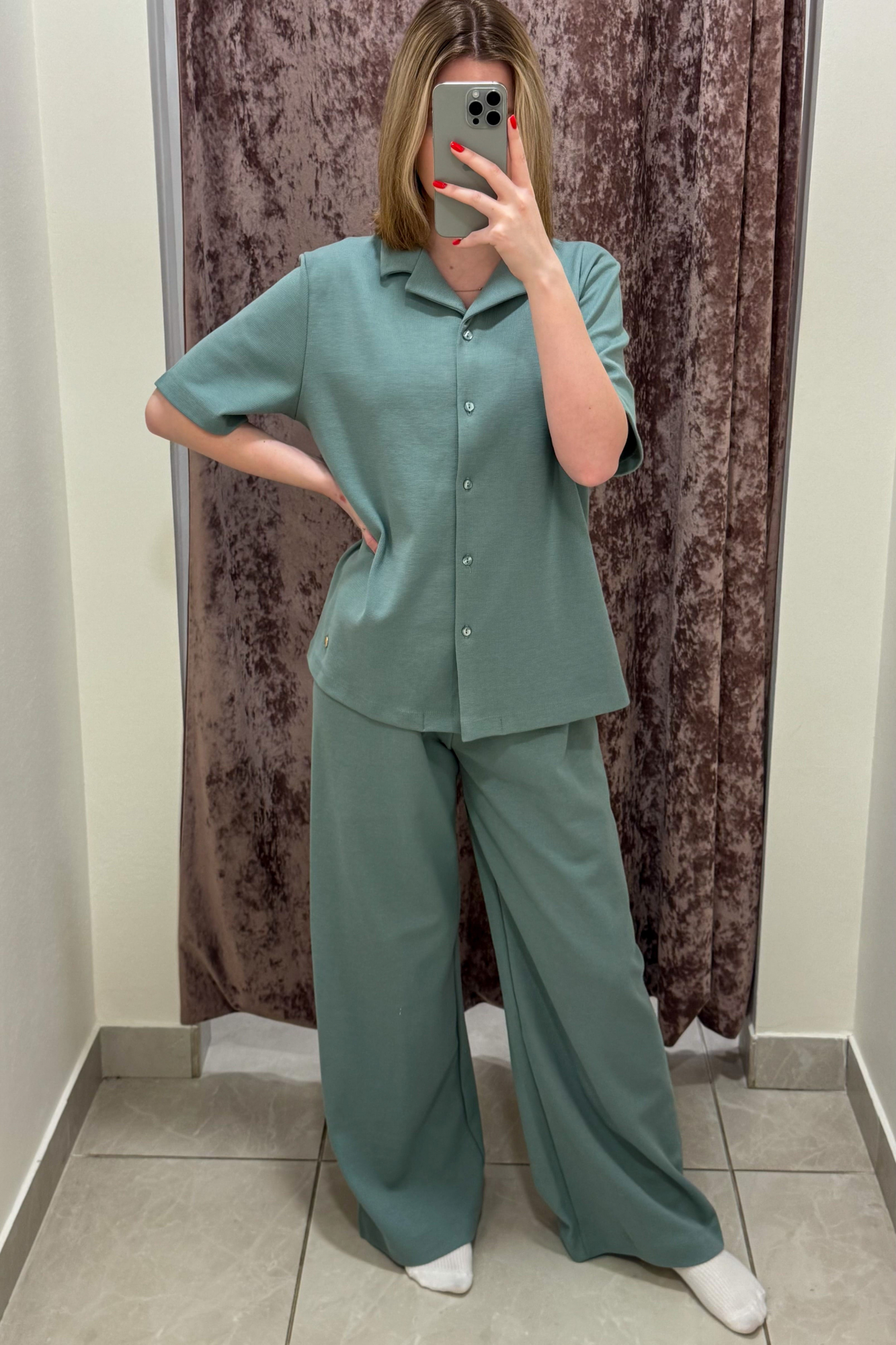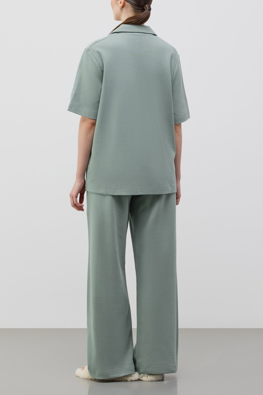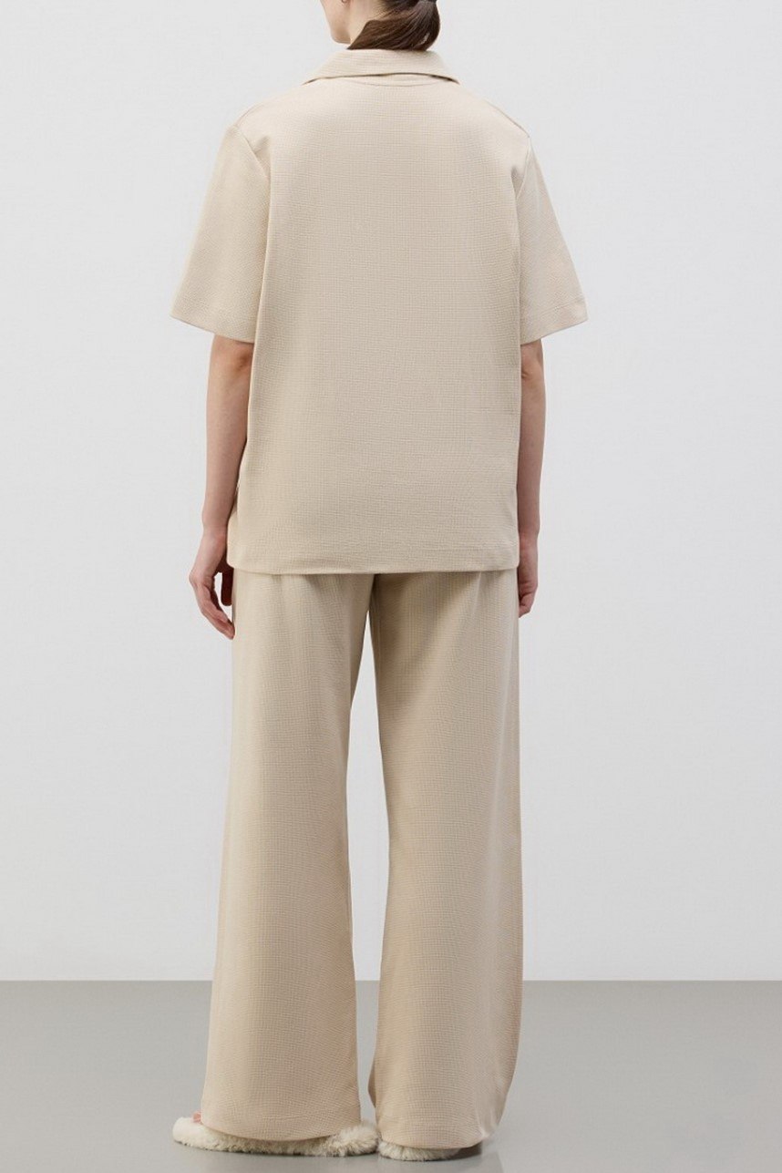 Комплект выполнен из 100% вафельного хлопка, он отлично сохраняет тепло и позволяет коже дышать.