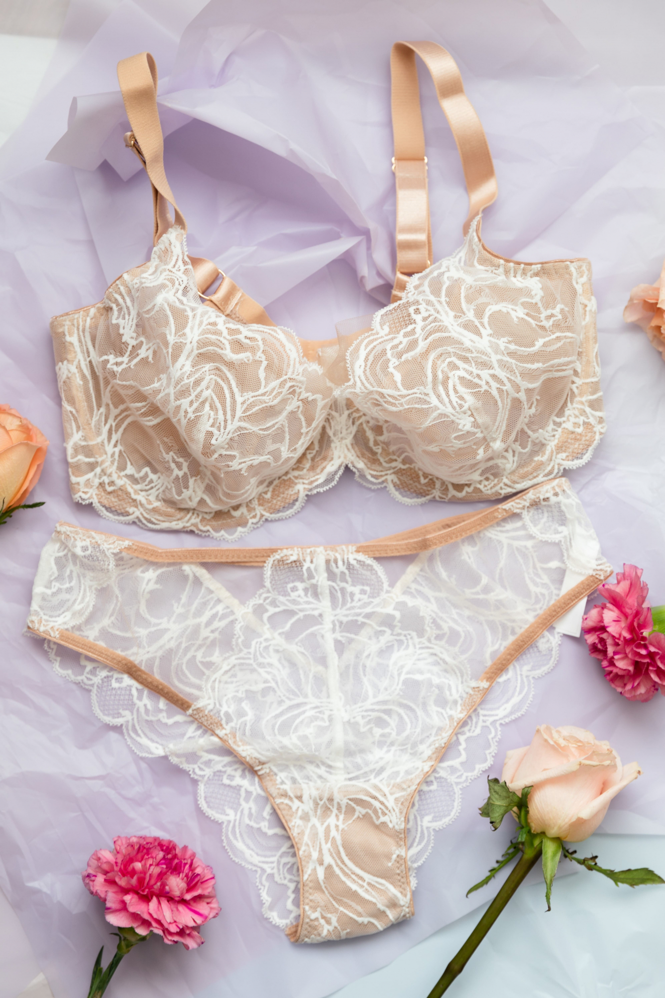 Сверху чашка украшена красивейшим белым кружевом, которое деликатно покрывает грудь, точно повторяя ее изгибы.