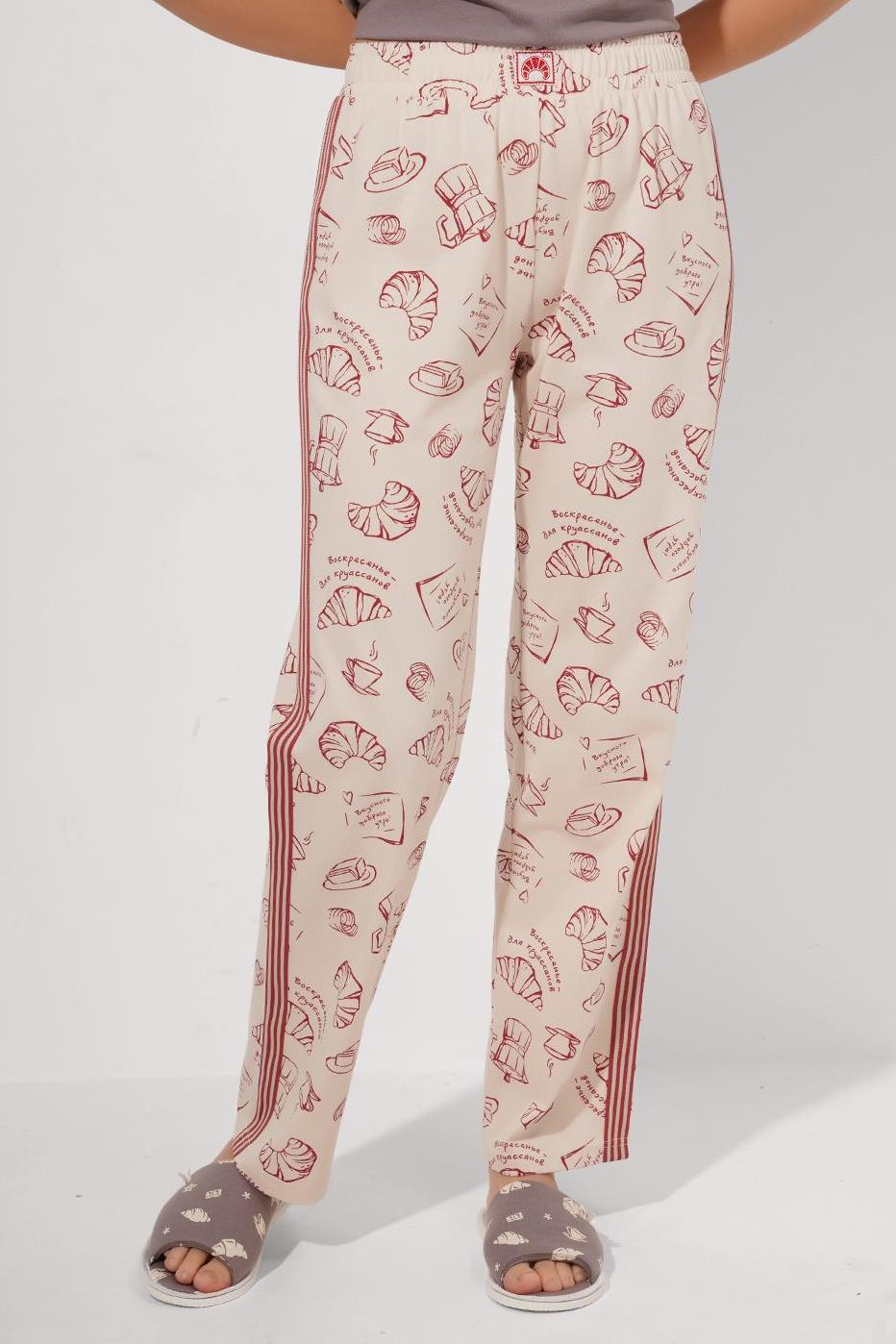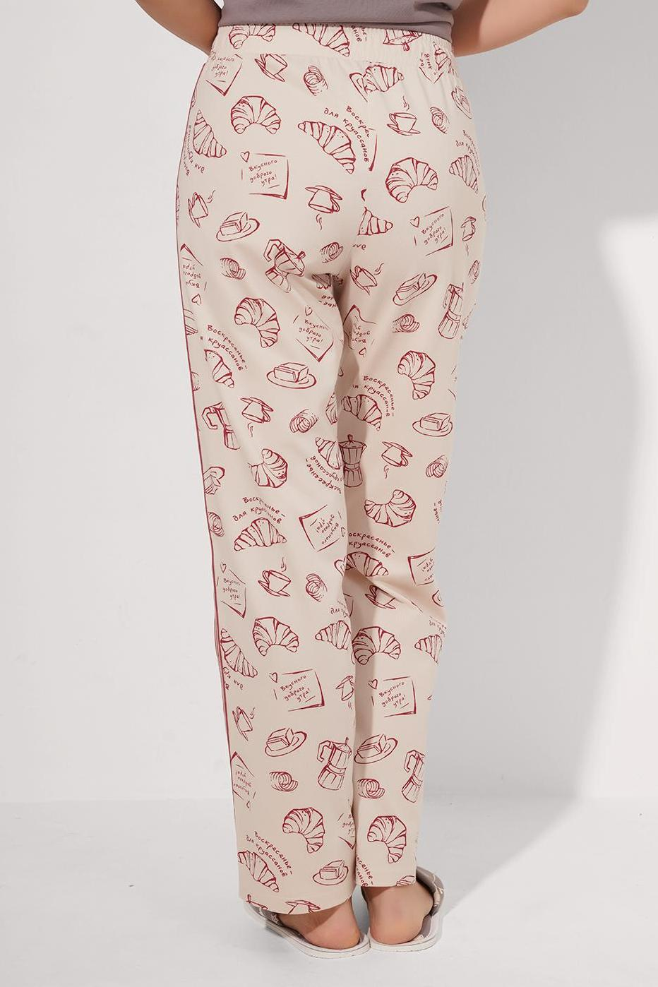 Брюки с поясом на внутренней резинке, по боковому шву -лампас из тесьмы, спереди нашивка.